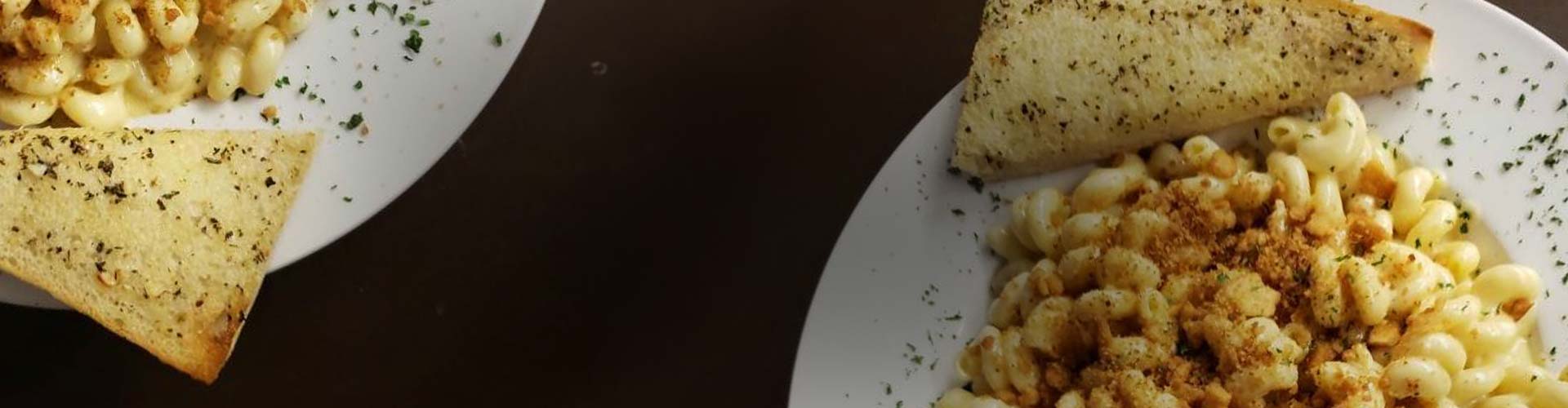 Adult mac and cheese served with warm garlic bread at Cheers Grille & Bar in Concord NH.